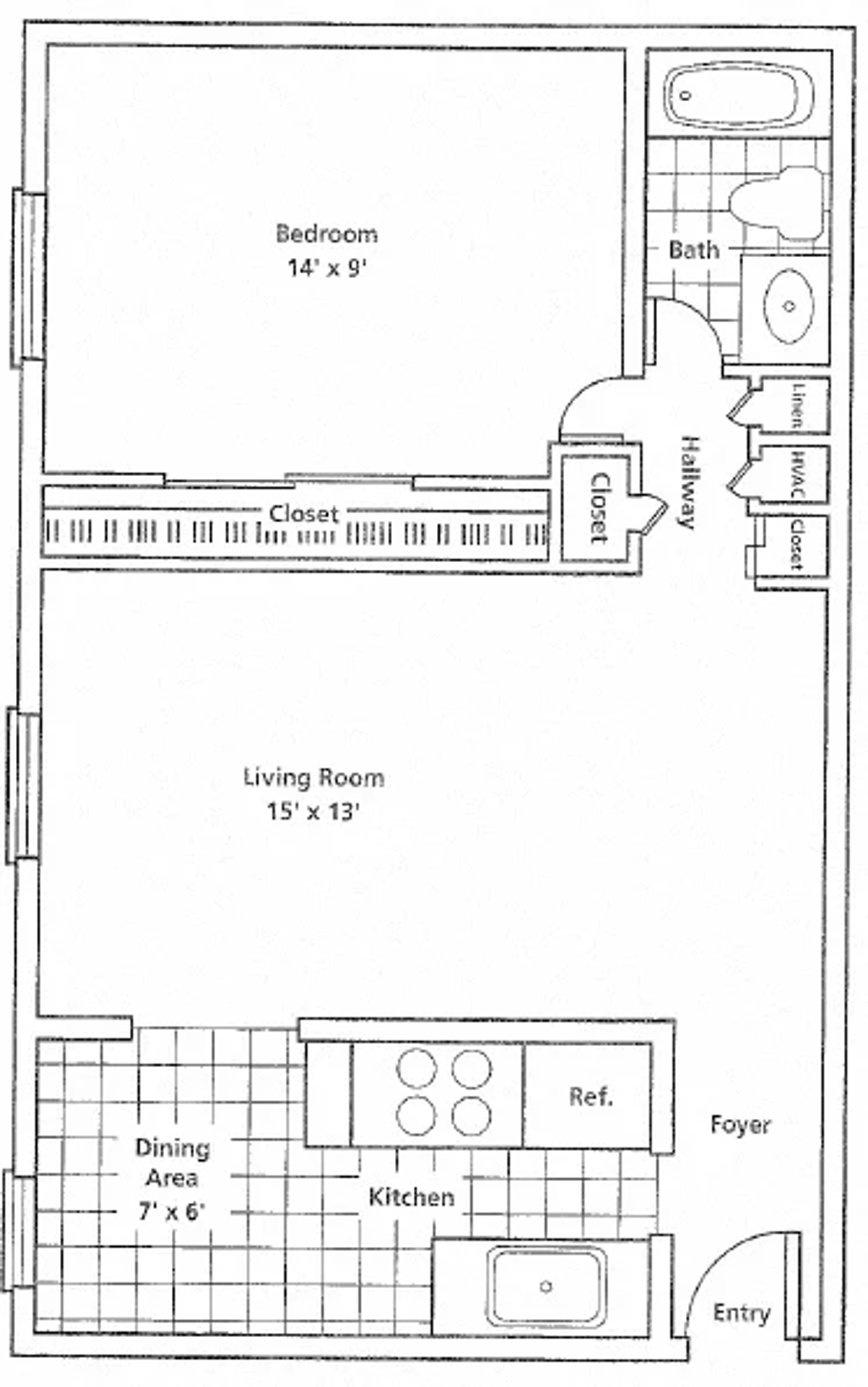 Discover over 450 square feet of elegantly designed living space, featuring luxury vinyl plank flooring or new carpeting, fresh paint, and contemporary appliances. Our residents enjoy close proximity to local coffee shops, restaurants and entertainment, on-site laundry facilities, air conditioning, and 24-hour maintenance services, ensuring a worry-free living experience.